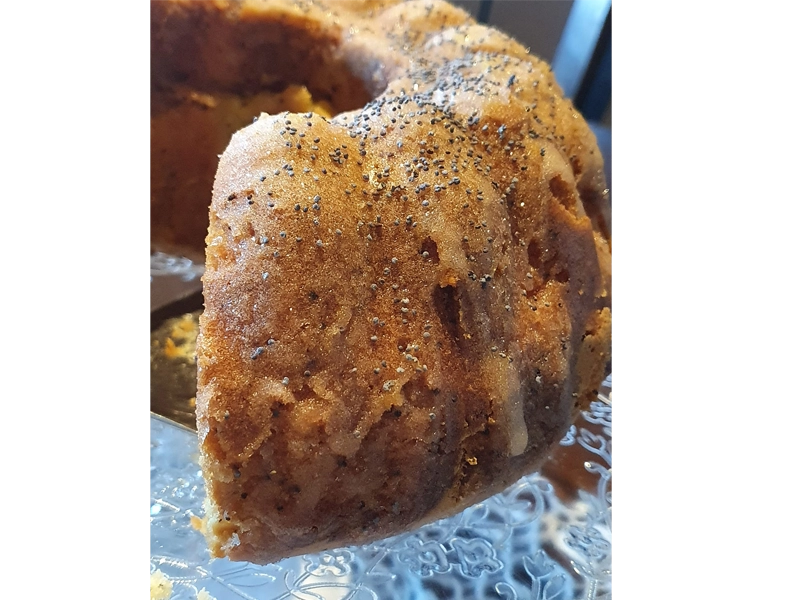 Mettete in una planetaria le uova e lo zucchero e sbattete fino a ottenere un composto spumoso. Versate la farina e lievito setacciati, il burro morbido, 3/4 di semi di papavero e infine il succo di arancia. Continuate ad amalgamare finché otterrete una massa omogenea.
