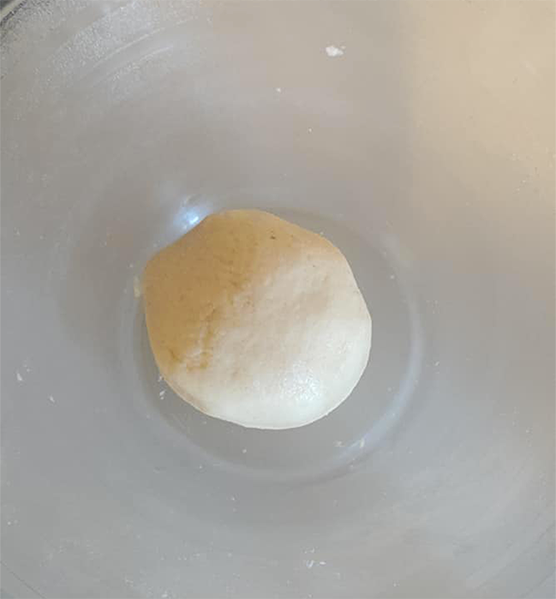 - Dopo 24 ore, verificate l'assenza di muffa, trasferite in una ciotola ed aggiungete un paio di cucchiai di entrambe le farine ed uno di acqua, impastate e riponete nel recipiente ripulito.
