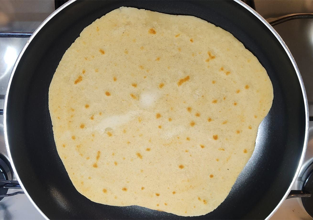 - Scaldare una padella antiaderente e posizionare la piadina 2 minuti per lato