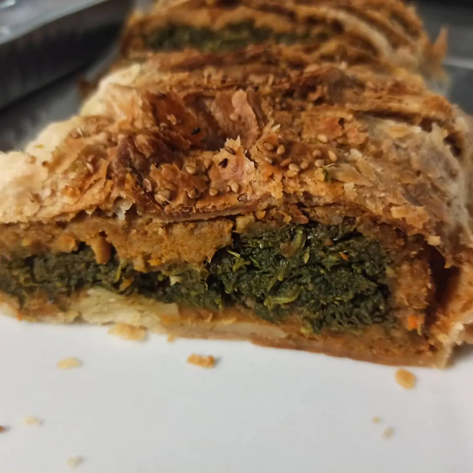 - Assemblate il polpettone mettendo il composto di lenticchie sulla pasta sfoglia e al centro il ripieno di spinaci (già cotti), il grattugiato, sale e pepe