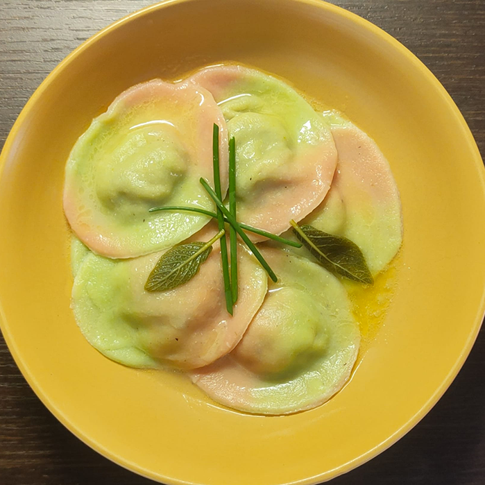 - Ravioli: Sono pasta fresca ripiena a forma di quadrato o mezzaluna. Possono essere farciti con una varietà di ingredienti, come carne, formaggio, verdure o pesce. Sono solitamente serviti con salse leggere, come il burro fuso e la salvia.
