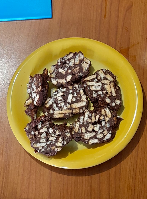 - Una volta fatto il salame con la carta forno lo avvolgiamo in un foglio di alluminio e lo mettiamo in freezer