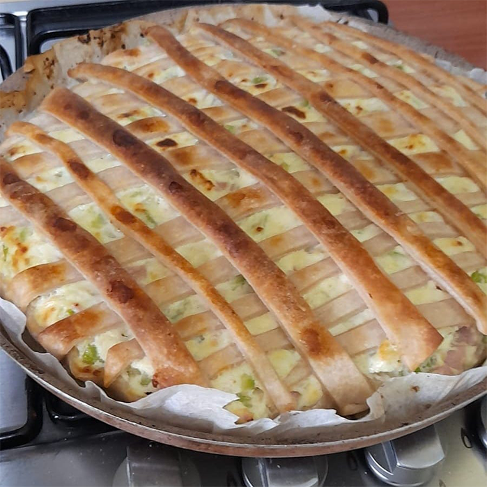 - Con la seconda pasta sfoglia tagliare delle striscioline e fare la guarnizione a piacere.